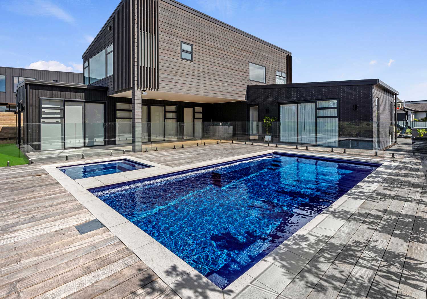 Enjoy your Liberty Fiberglass Pool and Spa long into the night with added lighting options. Choose from a variety of styles and brands to create your perfect late night getaway.