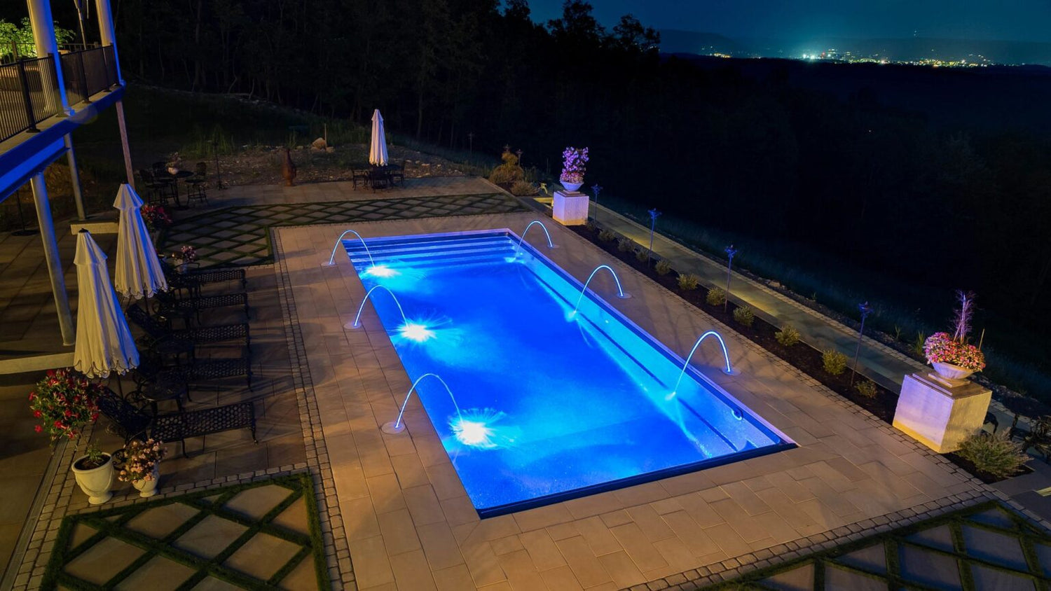 Enjoy your Liberty Fiberglass Pool and Spa long into the night with added lighting options. Choose from a variety of styles and brands to create your perfect late night getaway.