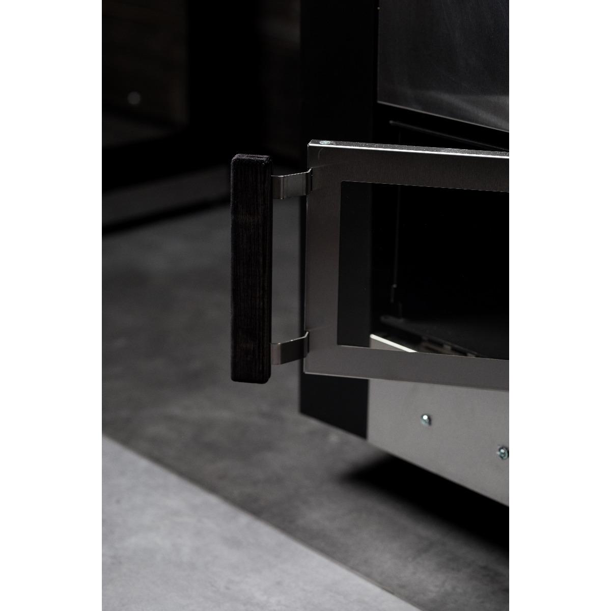 Featuring a stylish glazed door, the Kota Kuru 14 offers users the added luxury of enjoying the live fire during their sauna session. The black-painted steel housing creates a sophisticated and elegant atmosphere, while the wooden handles make the heater easy to use and handle.